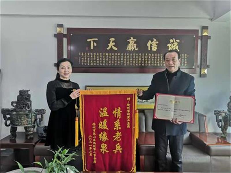 “情系老兵,溫暖緣泉”,泉山區退役軍人事務局特于2021年2月向集團頒發了榮譽證書與錦旗。