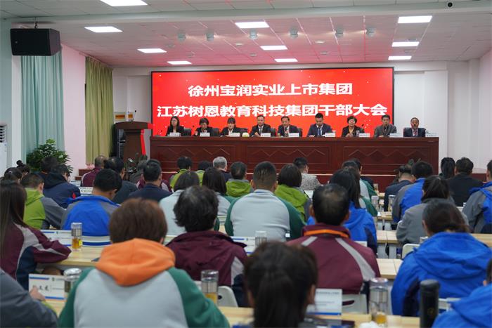 2020年10月10日,徐州寶潤實業上市集團、江蘇樹恩教育科技集團干部大會在徐州市樹恩外國語小學舉行。徐州寶潤實業上市集團董事局主席、董事長張愛平出席會議并作重要講話。集團董事局成員及下屬產業集團經營團隊、職能部門主要負責人參加會議。