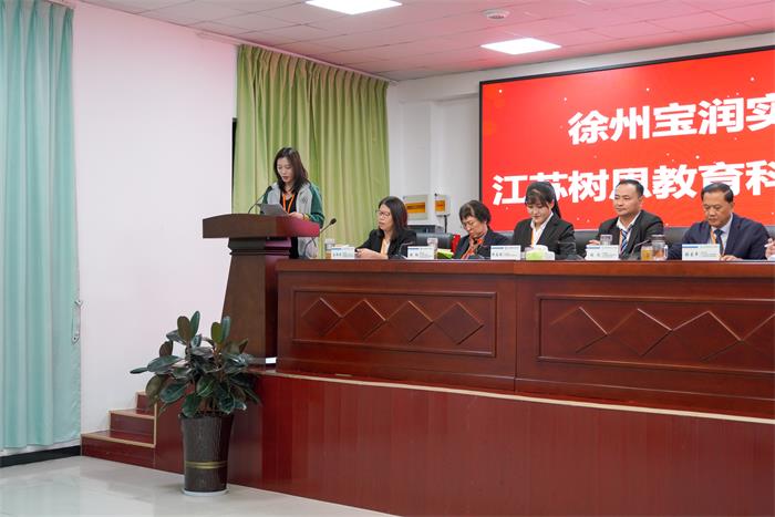 董事局董事、徐州市樹恩中學總校長兼初中部高鐵校區校長薛淑萍同志做工作匯報。