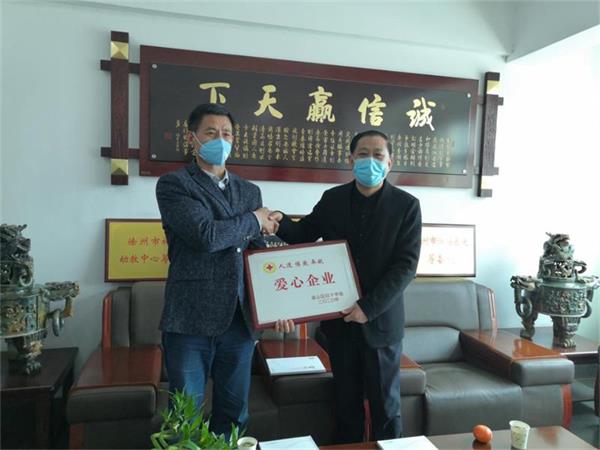 人道 博愛 奉獻 徐州市泉山區紅十字會為徐州寶潤實業集團頒發愛心企業牌匾