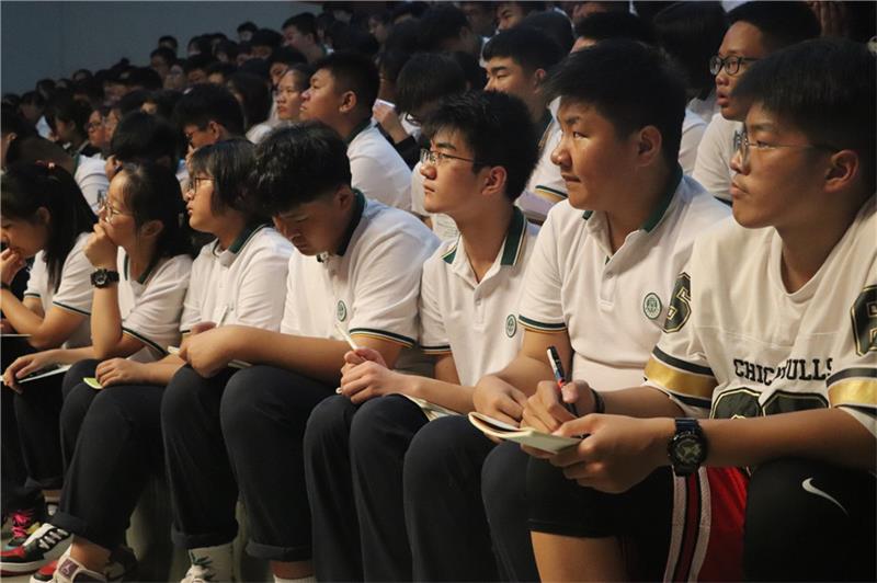 樹恩中學(xué)高中部領(lǐng)導(dǎo):錢益民校長、趙靜主任、劉同華主任和年級組程建軍主任蒞臨會場,和高中部全體師生濟(jì)濟(jì)一堂,共訴對新學(xué)期的暢想對未來的展望。