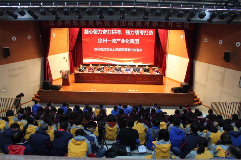 2019年11月23日,上海股交所上市企業徐州寶潤實業集團、江蘇樹恩教育科技集團績效考核工作會議在徐州市樹恩中學高鐵校區小劇場召開,來自兩大集團的機關部門工作人員、八大產業領導班子成員、各產業項目部負責人、樹恩中學高鐵校區和復興北校區以及樹恩一院三中心全體教職員工共300余人參加了會議。兩大集團董事長張愛平出席會議并作重要講話。